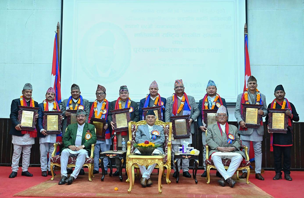 On the occasion, President Paudel conferred Natikaji National Special Honour on lyricists Ananda Adhikari, Bhusan Kharel, Sunil Thapa, Ram Bhattarai and Basanta Bityasi Thapa, on musicians Keshav Sunam, Dharma Munikar, Kumar Singh and Suvarna Limbu and signer Sudesh Sharma.