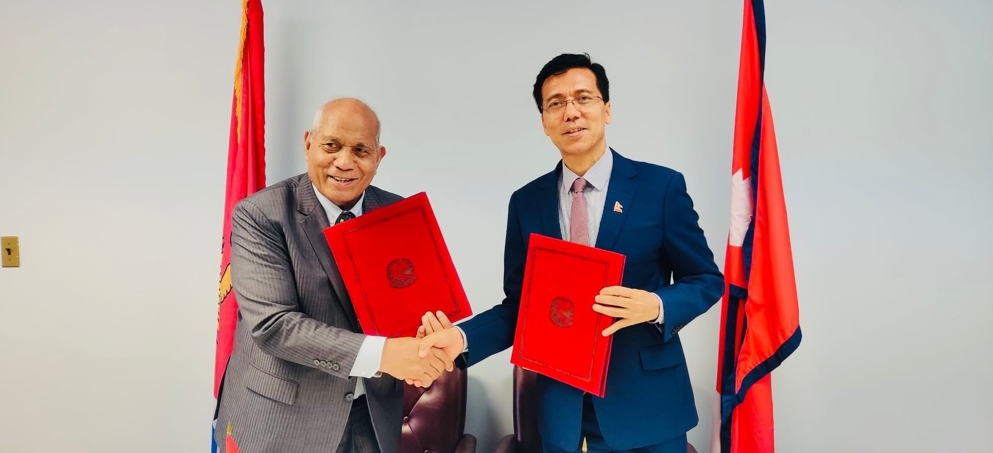 Ambassador and Permanent Representative of Nepal to the United Nations Lok Bahadur Thapa and Ambassador and Permanent Representative of the Republic of Kiribati to the United Nations Teburoro Tito signed a Joint Communiqué to this effect in a brief ceremony held at the Permanent Mission of Nepal in New York, today.