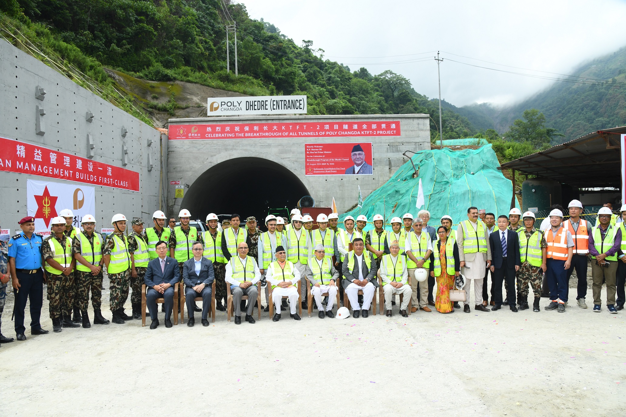 PM Oli today inaugurated the breakthrough of the 1.728-kilomtre-long tunnel towards the Kathmandu-Nijgadh side amidst a ceremony at Dhedre, Bakaiya Rural Municipality-12 in Makawanpur district today.